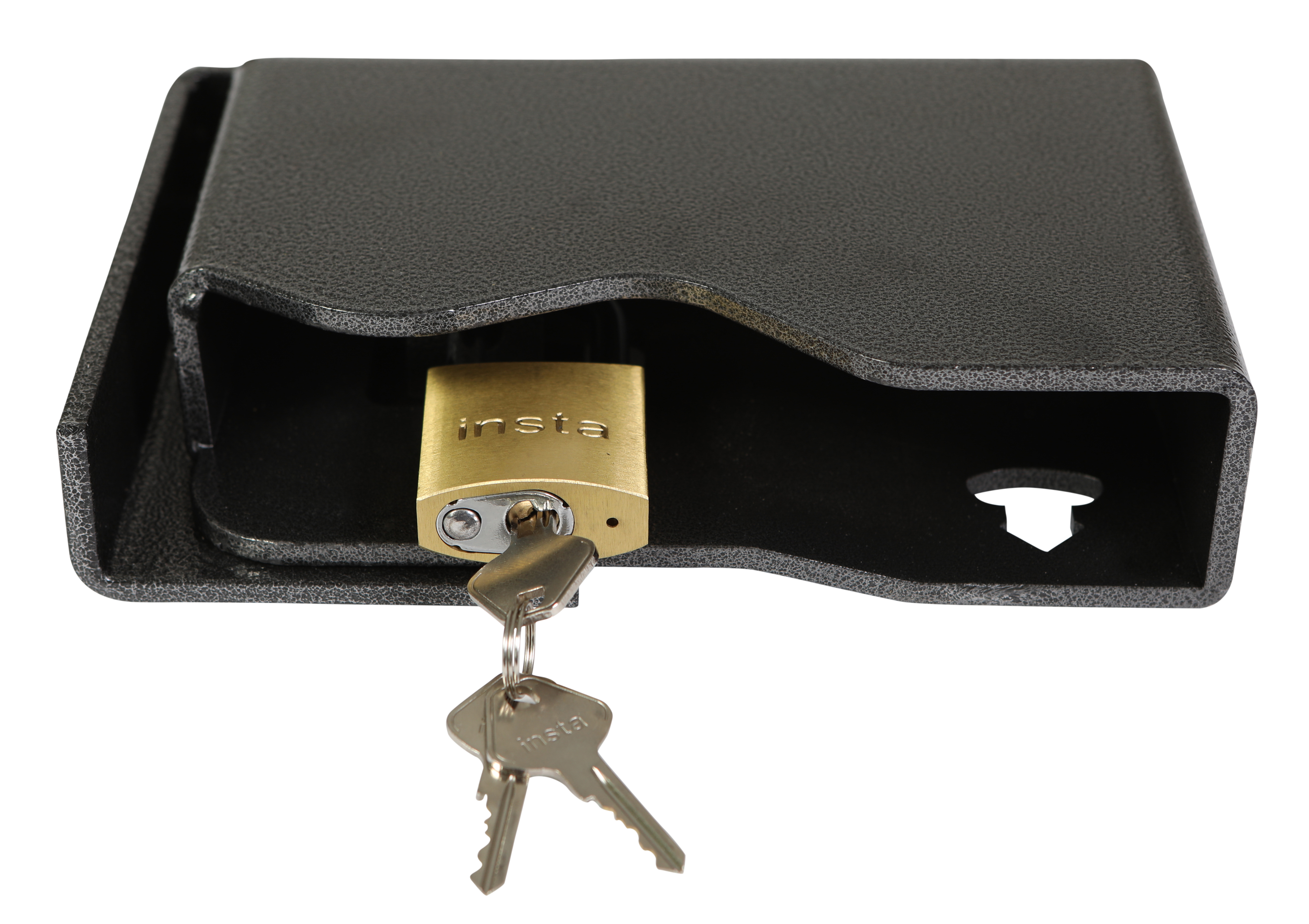 INSTA Shipping Container Bolt-On Lock Boxes will keep your stored belongings safe and secure. The INSTA Bolt-On Lock Box is the first shipping container lock box designed to be bolt-on and comes powder coated dark gray so NO welding and NO painting is required. This Insta Bolt-On Lock Box is our most popular modification item. The ‘Wave’ design keeps the lock hidden, protecting locks from being accessible to bolt cutters while allowing easier access when attaching the lock. Lockboxes are available in right and left-hand options and are best used with our #6850 INSTA Pad Lock, #8080 INSTA Sobo Block Lock, or #6850 Master Lock Pad Lock.